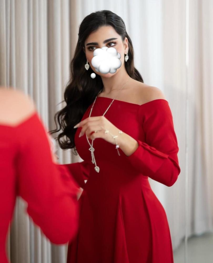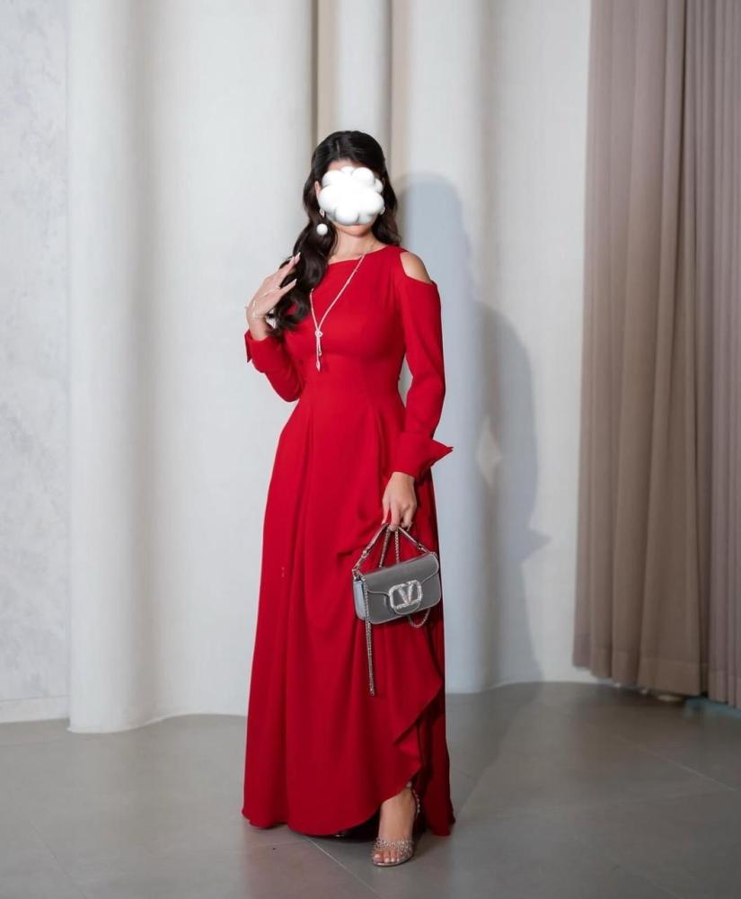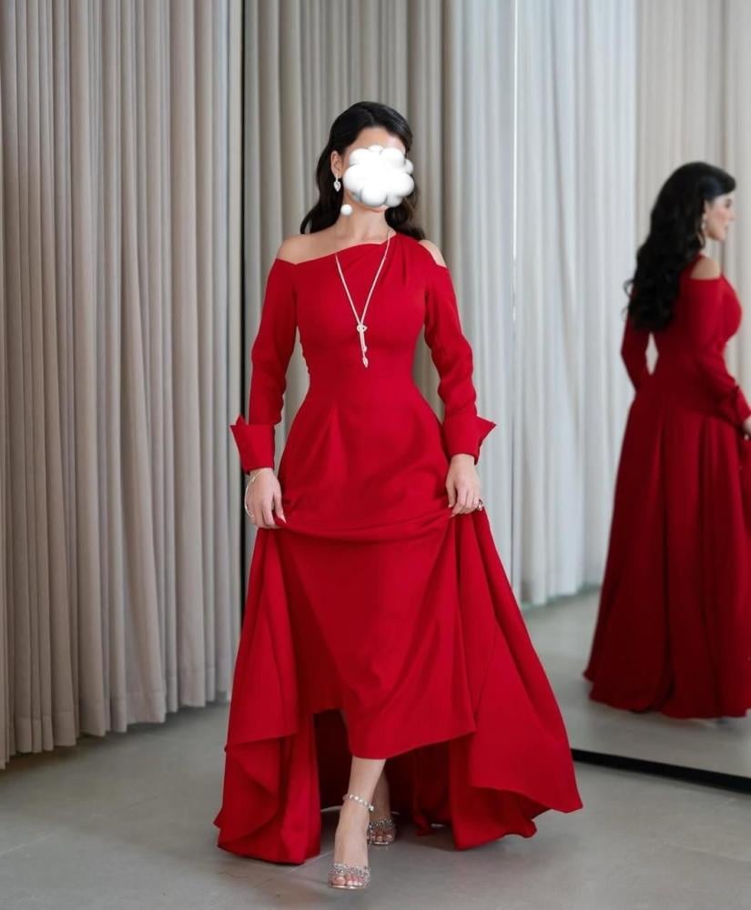 فستان سهرة ناعم طويل لون احمر بقماش التفتة الباربي الناعمه