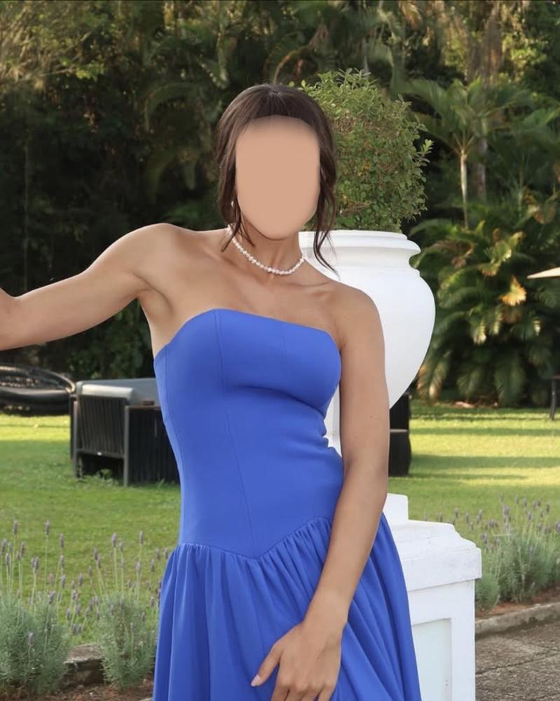 فستان تب طويل لون نيلي ب شال منفصل ب قماش التفتة الباربي