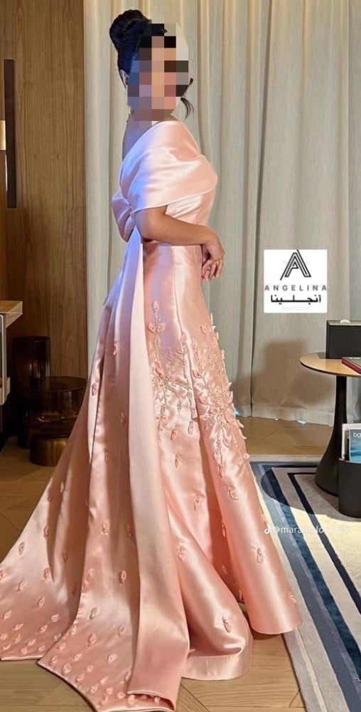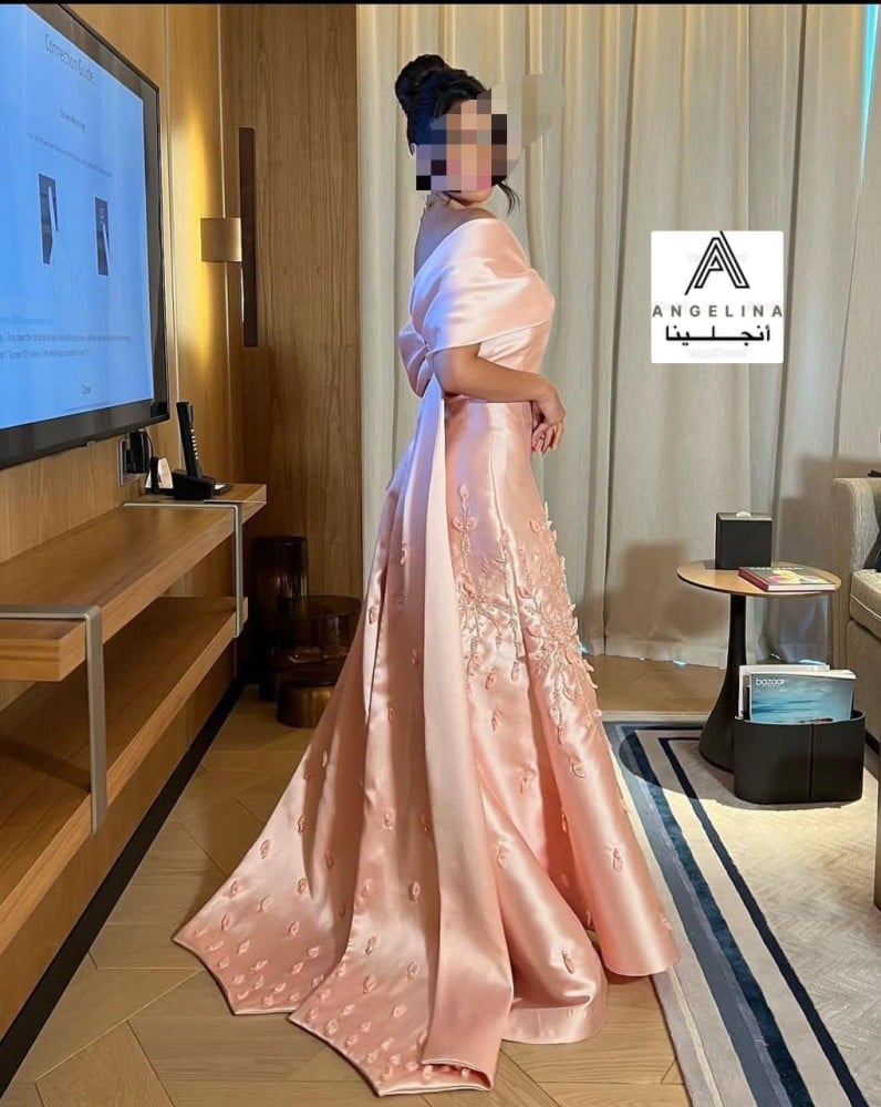 فستان سهرة بخامة الميكادو 6 مقاسات لون واحد مطرز كمبيوتر وفصوص