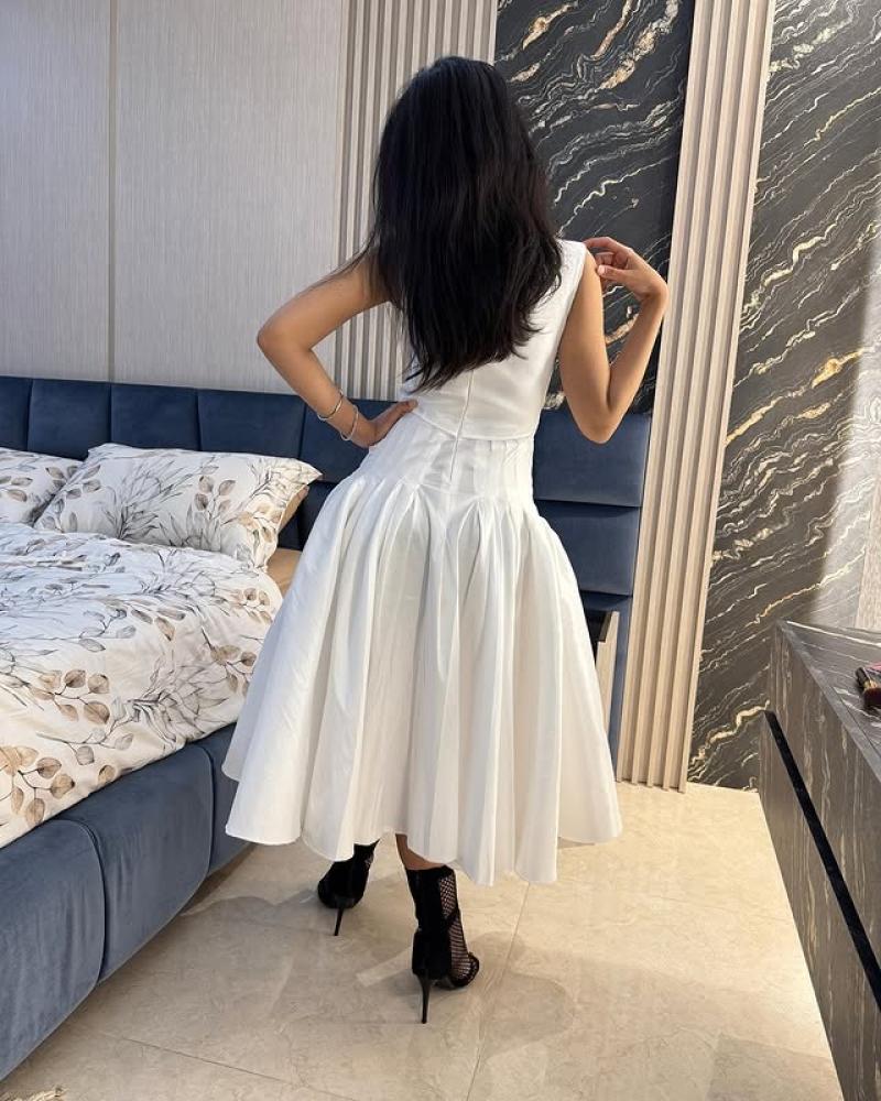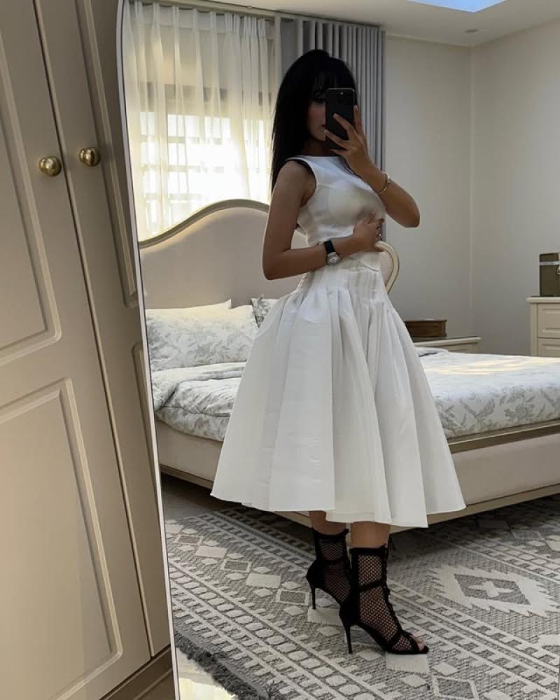 فستان ناعم قصير لون سكري بقماش التفتة الشان طون