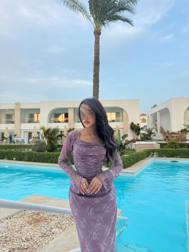 فستان ناعم لون بيبي موق علاقي وجاكت قطعتين منفصله بقماش التل الناعم المشجر المبطن