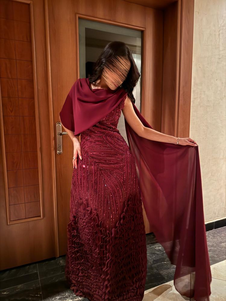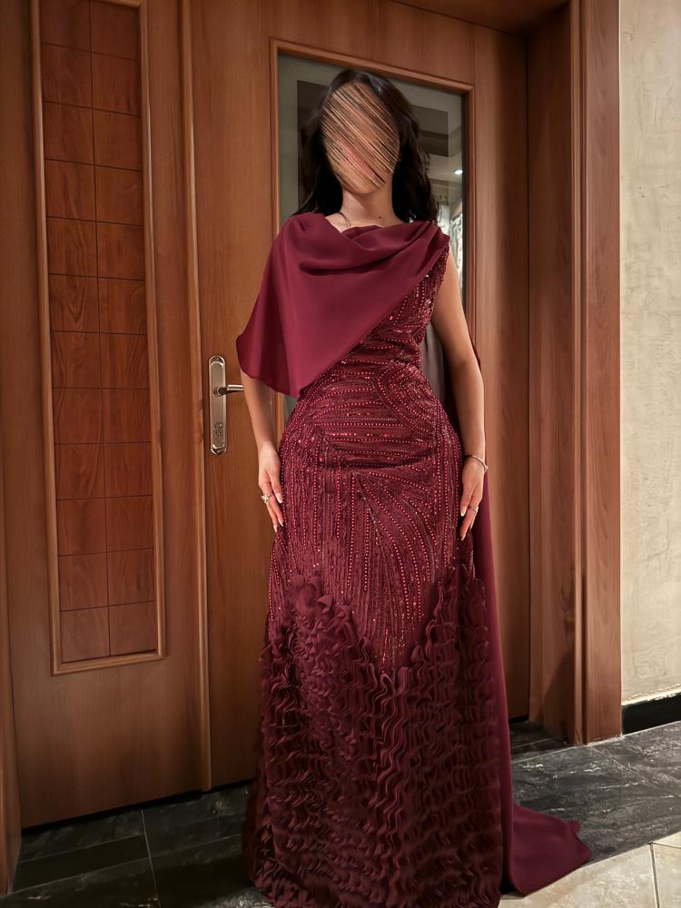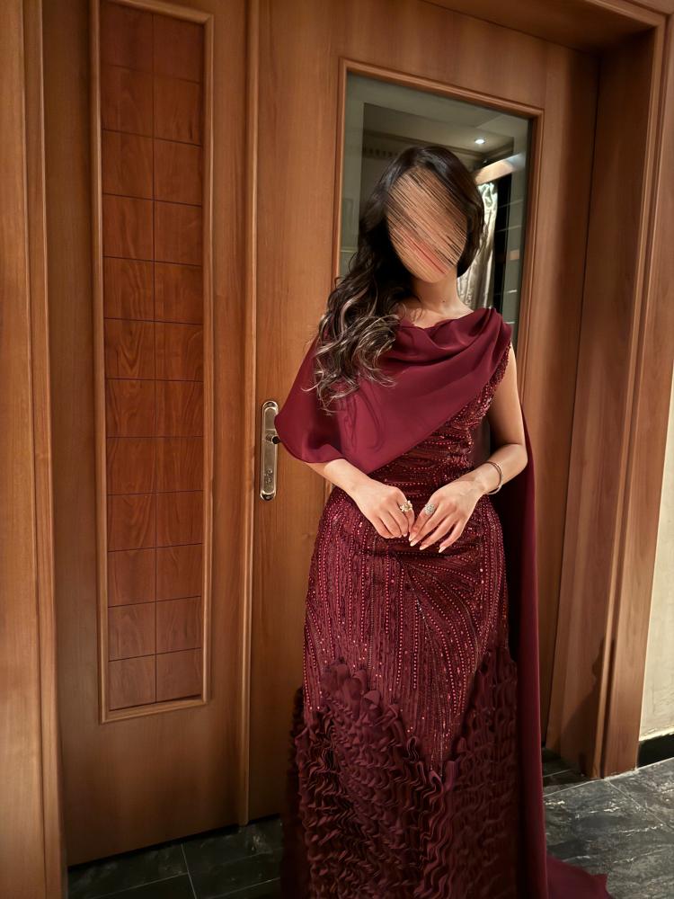 فستان امال بثلاث خامات شيفون شال لاصق بلفستان مطرز بفصوص من نفس القماش ومن الاسفل مورد متوفر بخمسه مقاسات