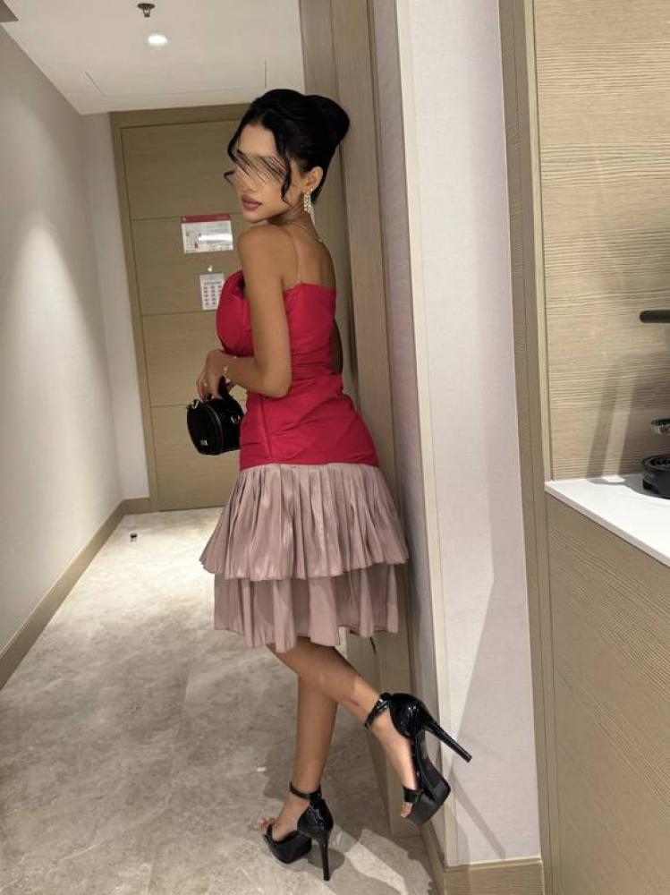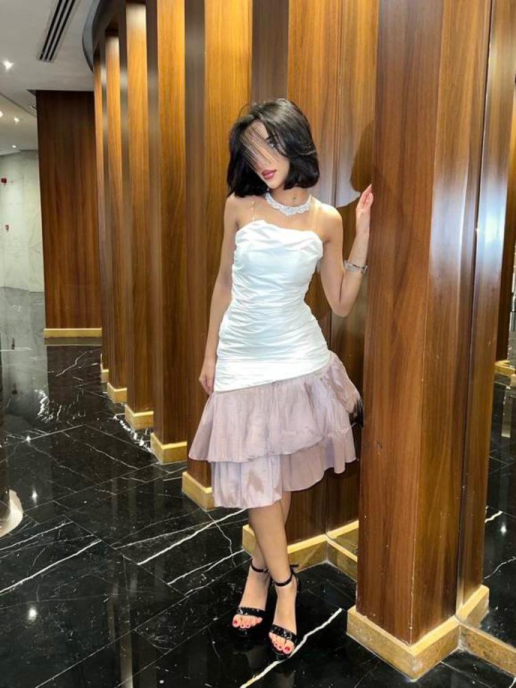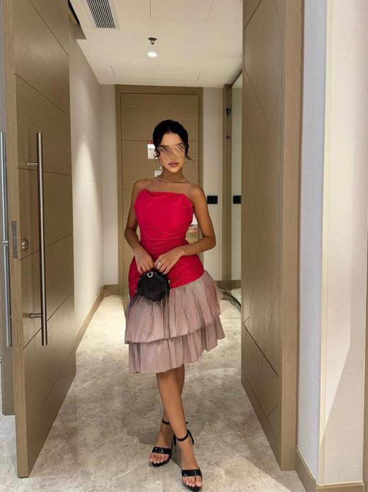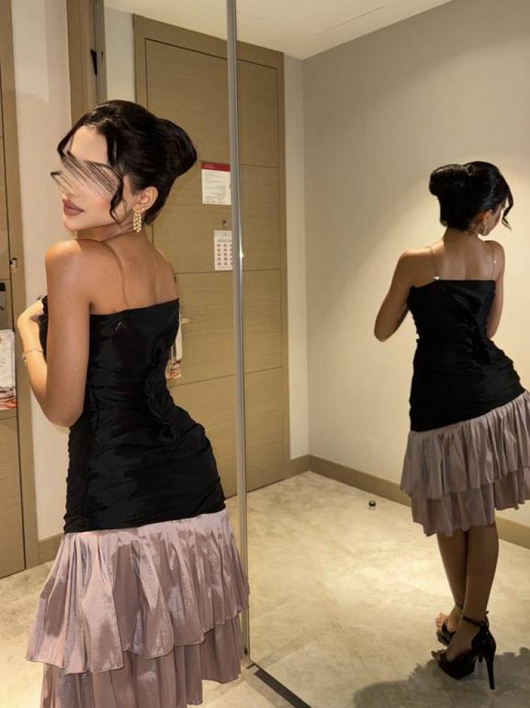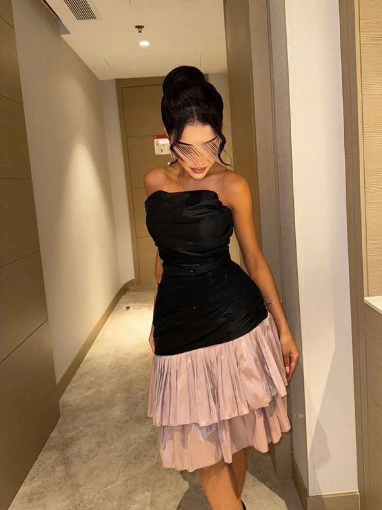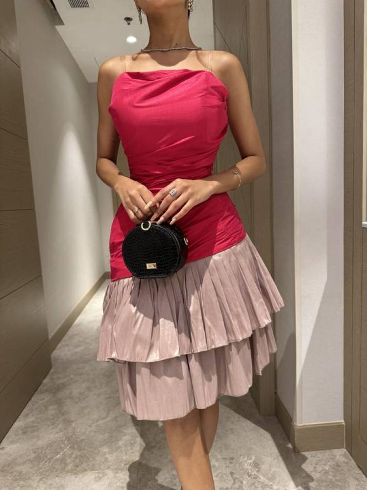 فستان تب قصير ب ثلاثه الوان بقماش التفتة الشانطون