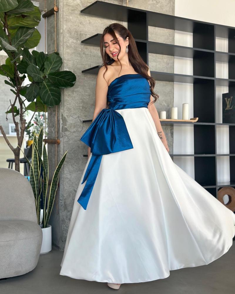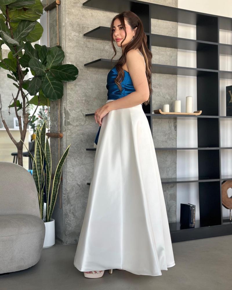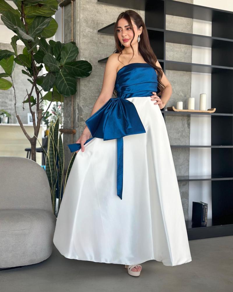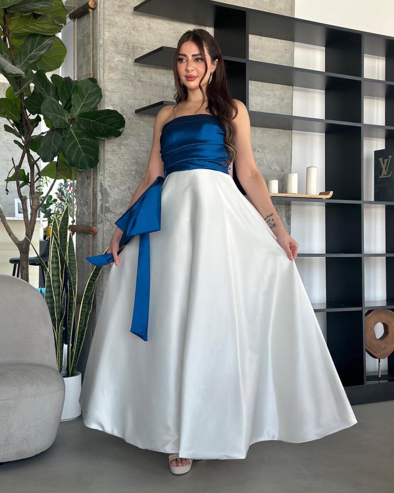 فستان تب سهرة طويل لونين بخام التفتة الشانطون كلووش وجيبون