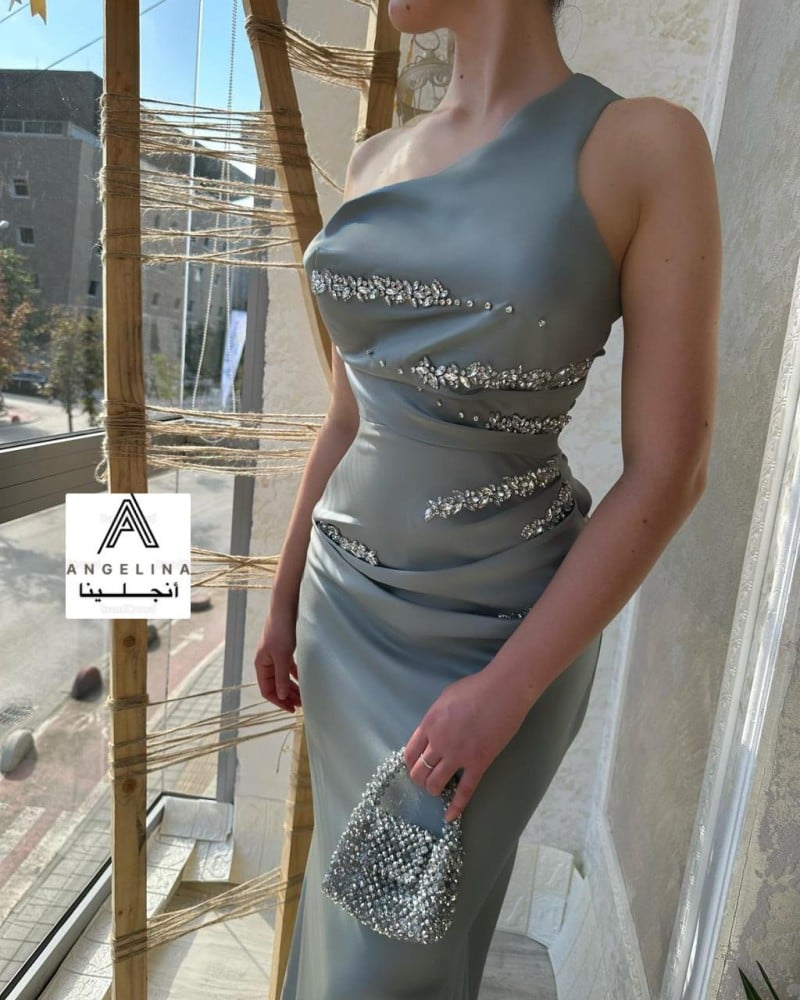 فستان سهرة بخامة التفته كريب 6 مقاسات لون واحد