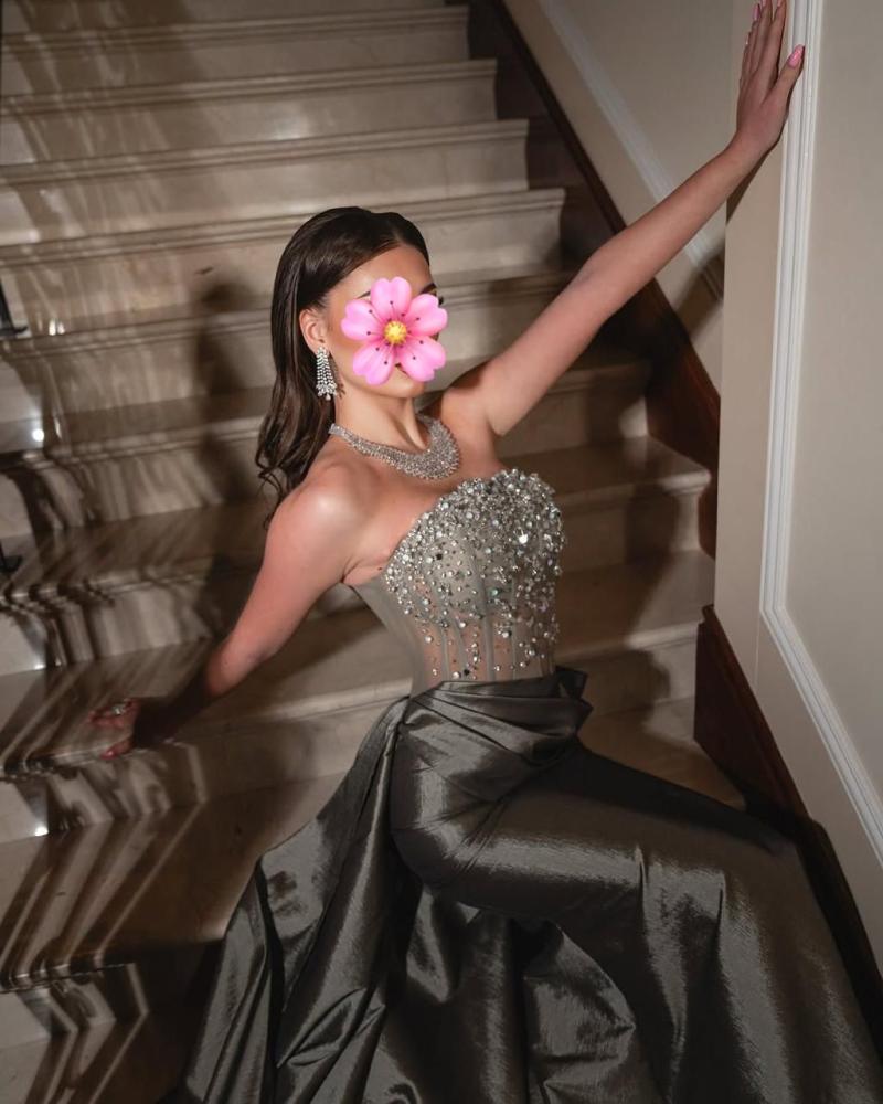 فستان تب طويل سهرة مطرز تطريز شك يدوي بخام التل والتفتة الشانطون متوفر لونين