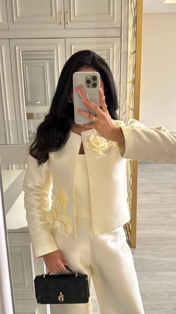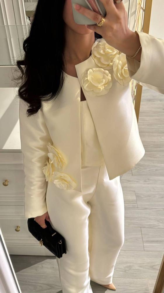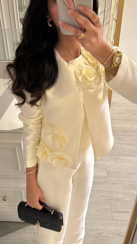 جمبسوت قطعتين لون سكري مزين بورد بقماش التفتة المي كادو