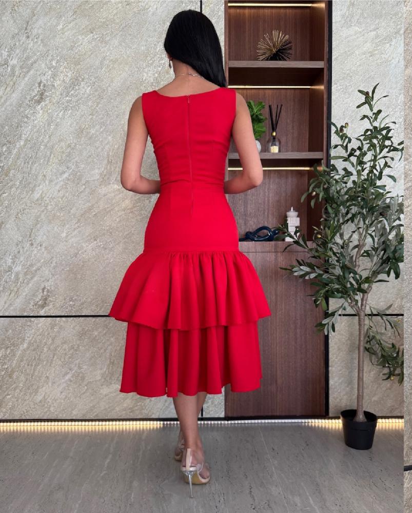 فستان احمر قصير ناعم طبقات بقماش التفتة الباربي