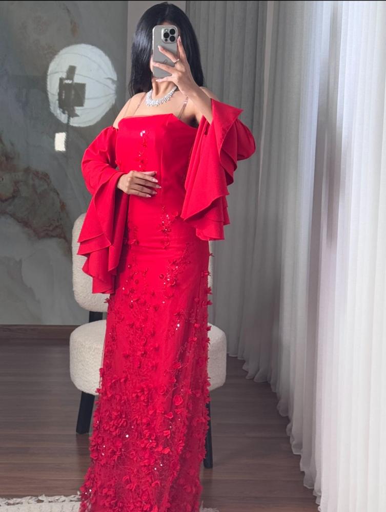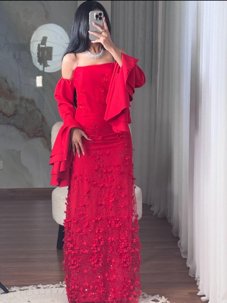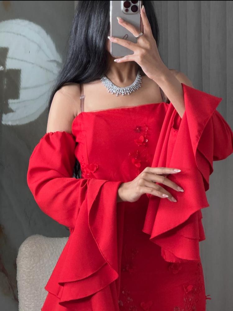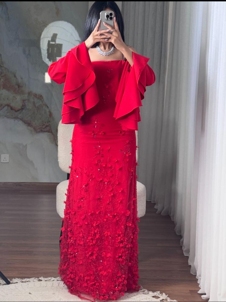 فستان بخام الباربي بلون الاحمر ، شك مورد سهرة راقي 6 مقاسات من S الى XXXL