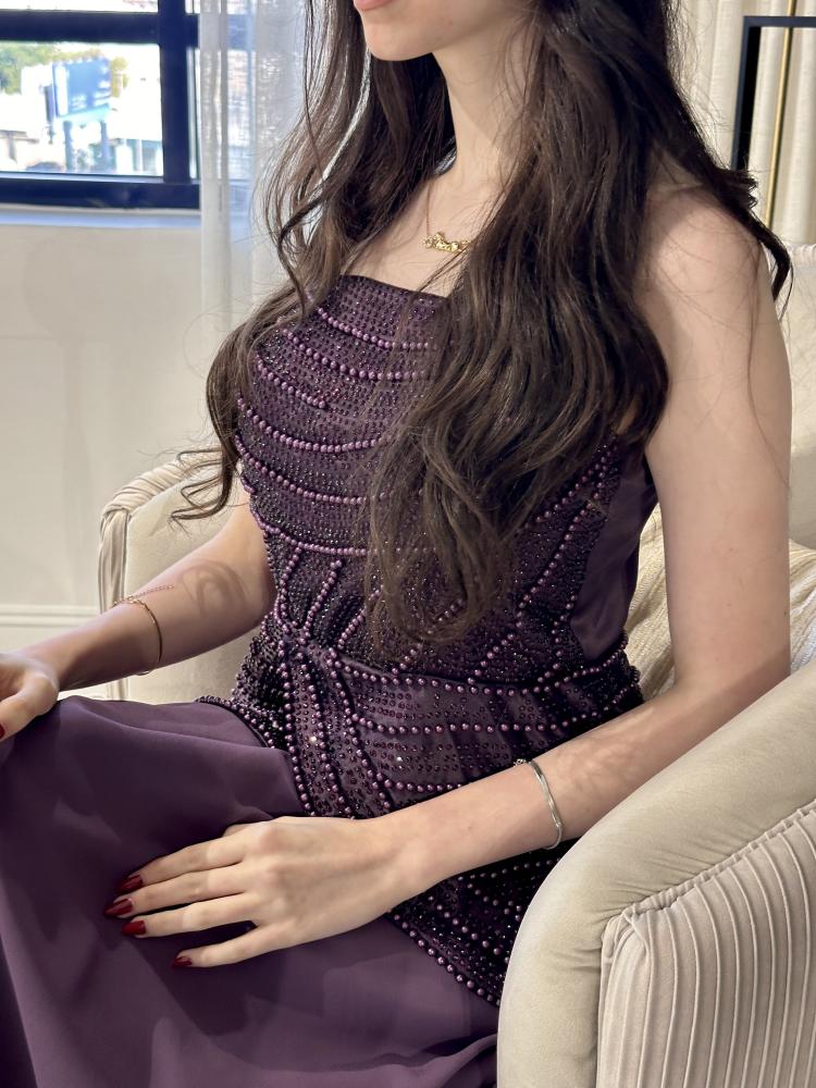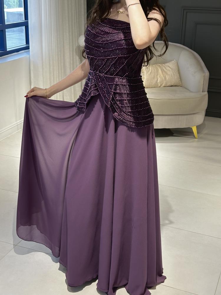 فستان بلون التركواز بخام الشيفون + بخرز ع كامل الفستان بخمسة مقاسات من S الى XXL