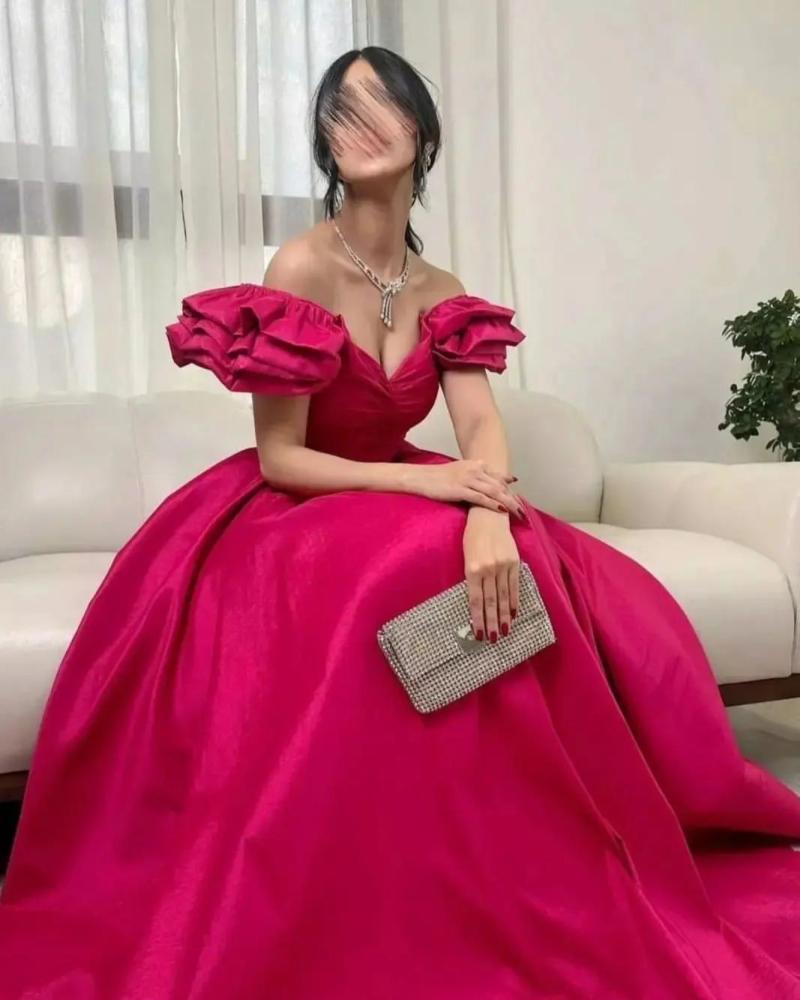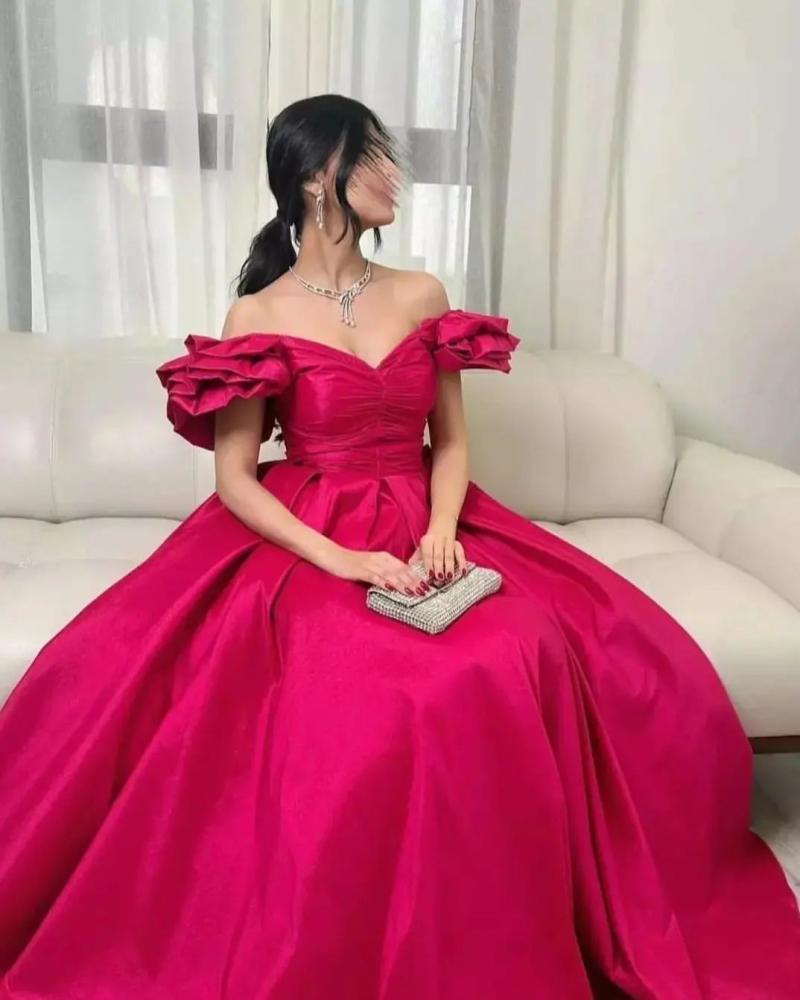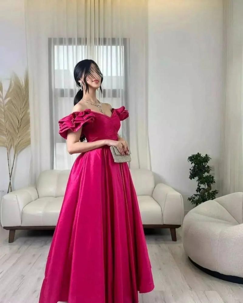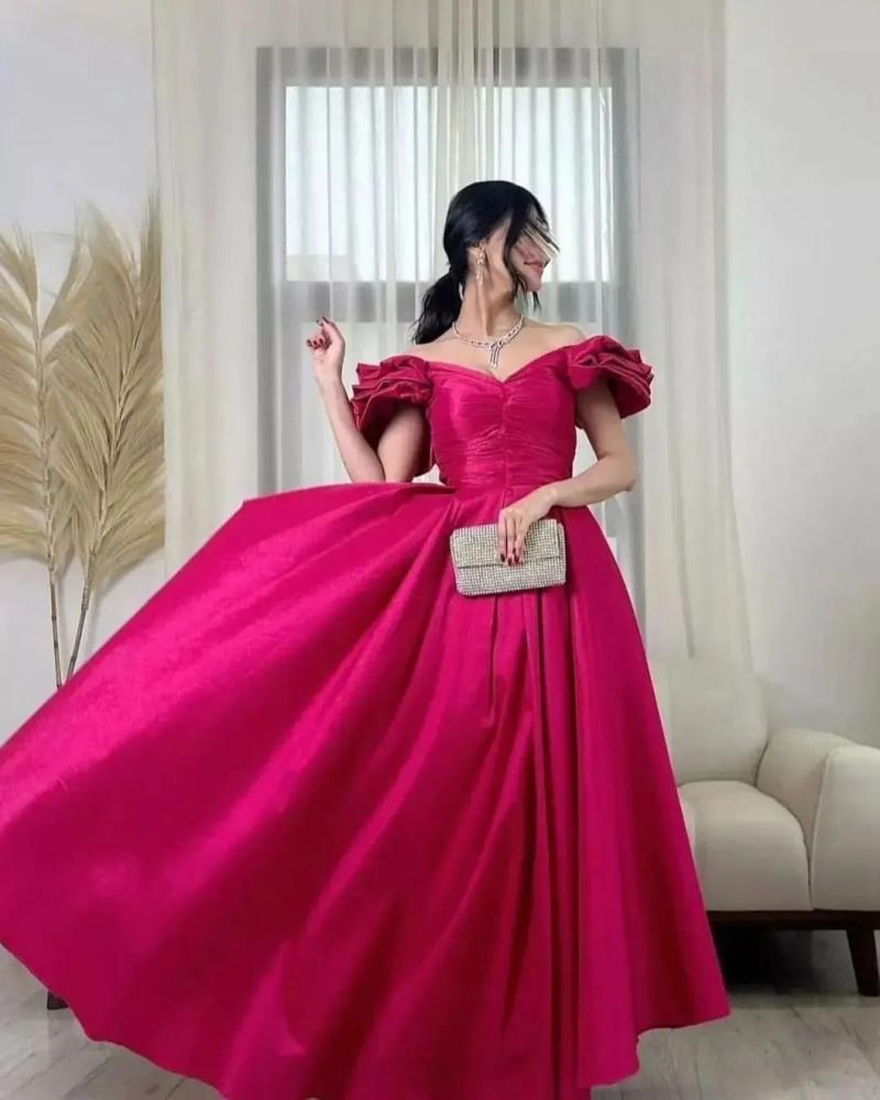 فستان سهرة لون فوشي خامة الشانطن 6 مقاسات