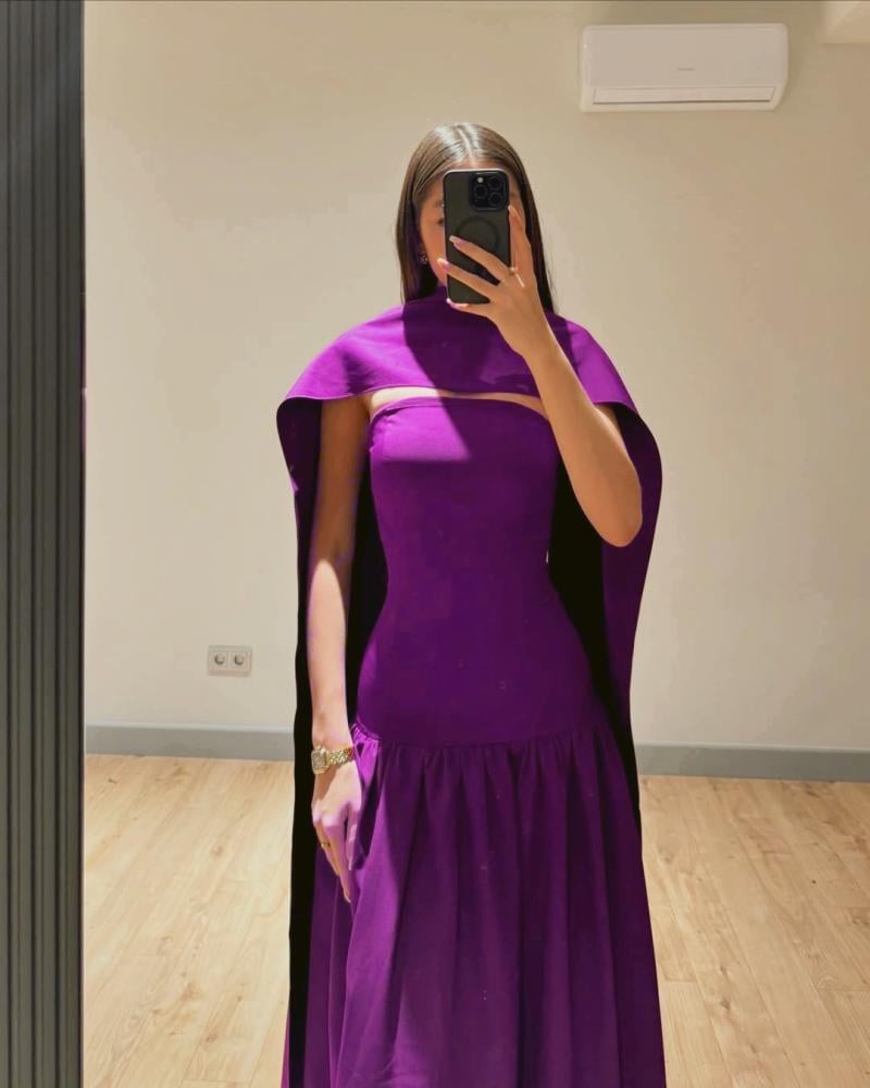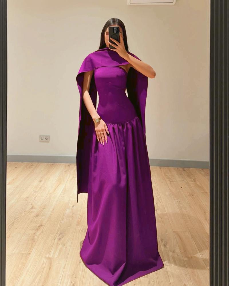فستان طويل ناعم بشال منفصل لون اورجواني بقماش التفتة الباربي