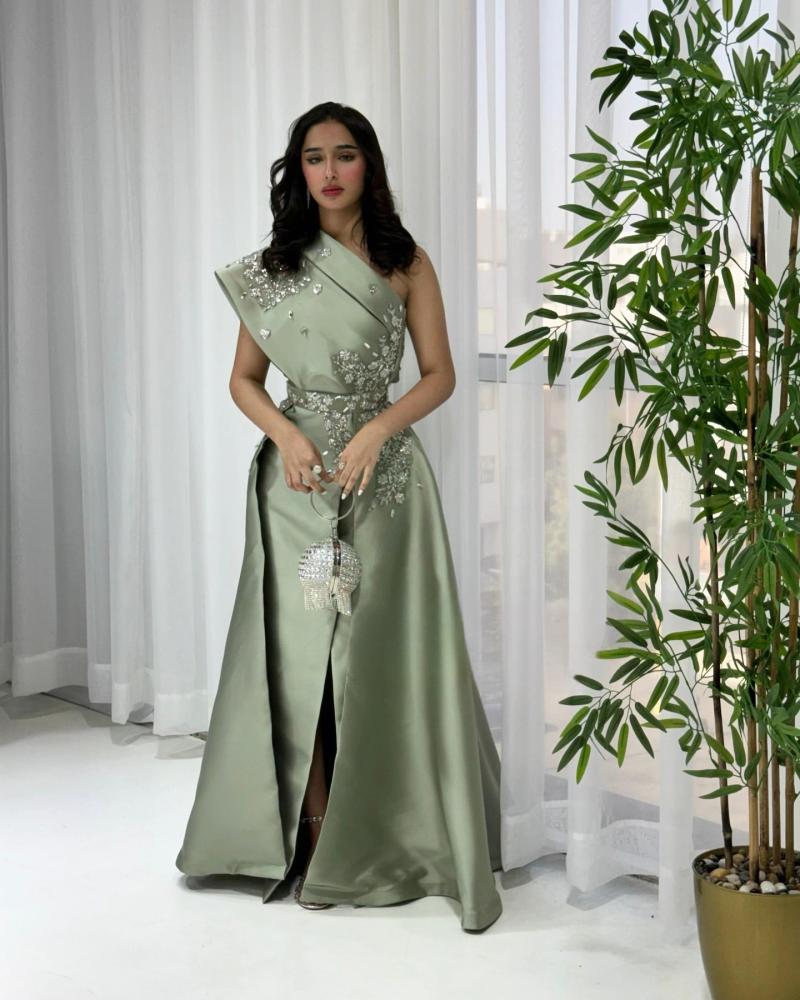 فستان سهرة طويل راقي بخام التفتة الميكادو