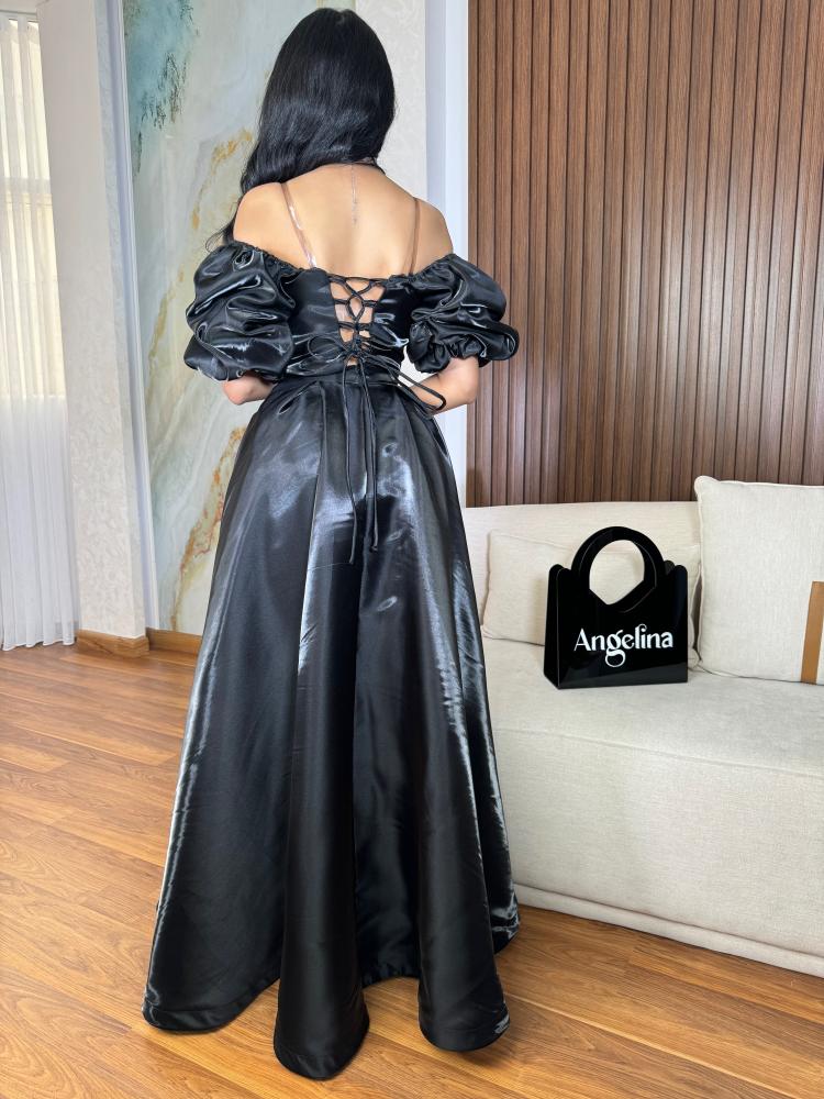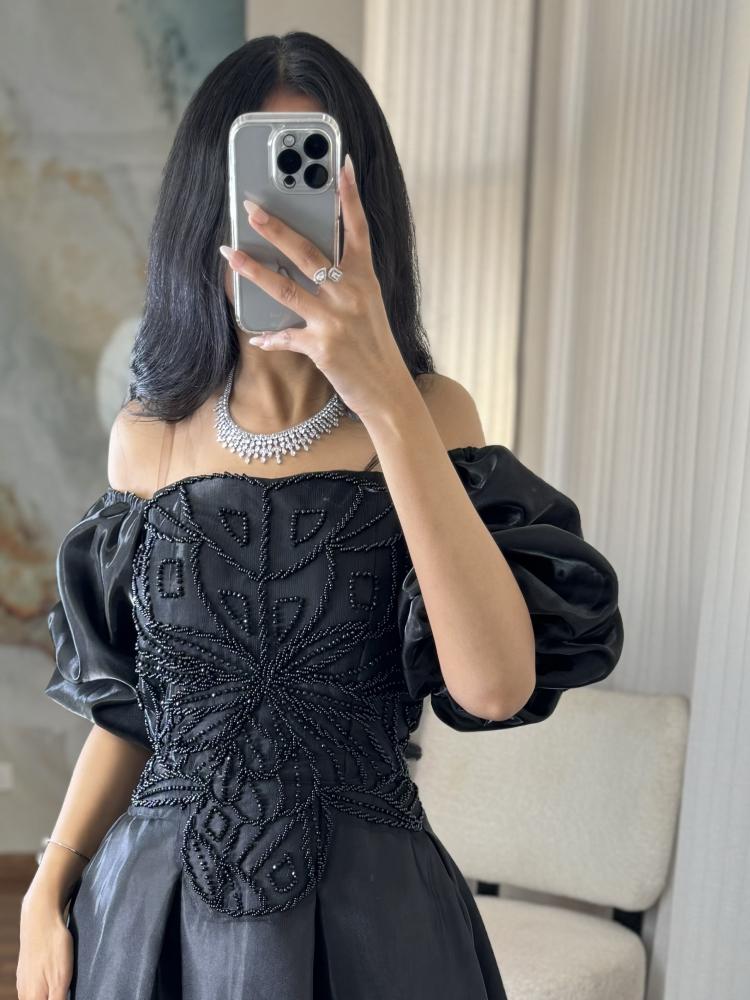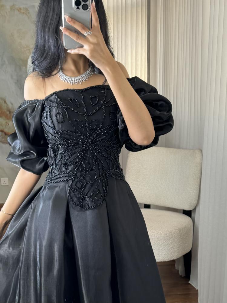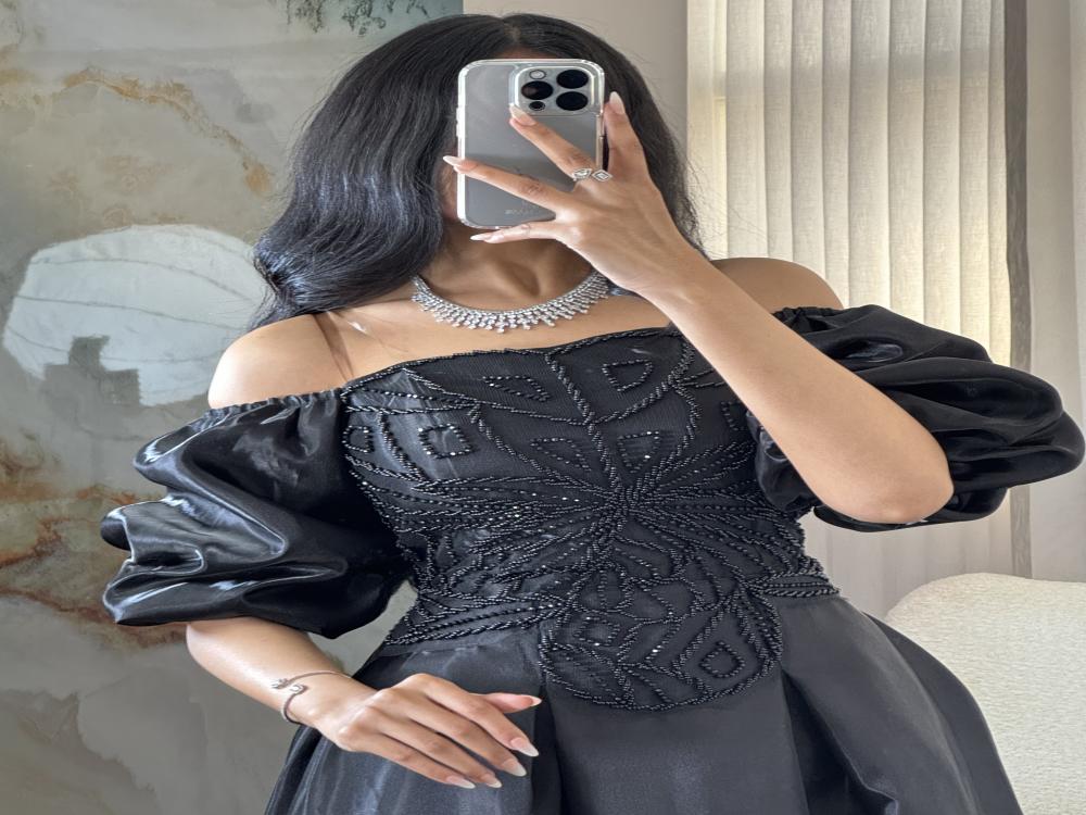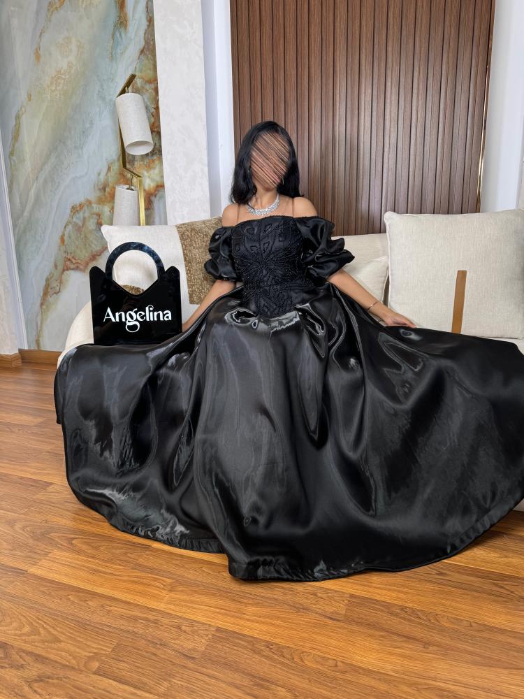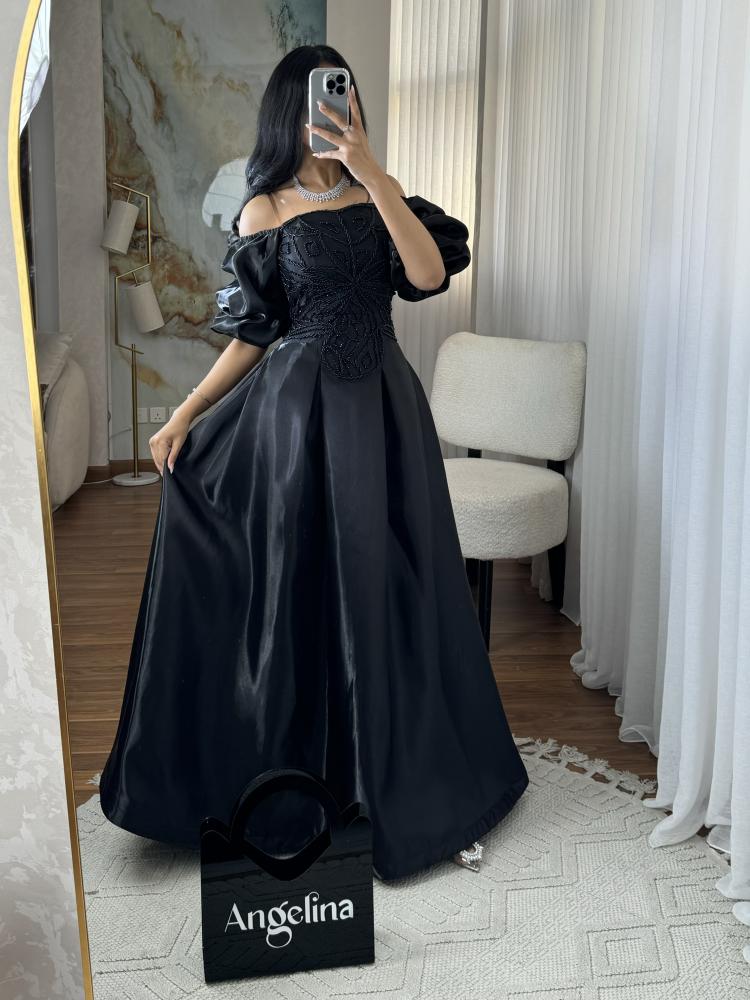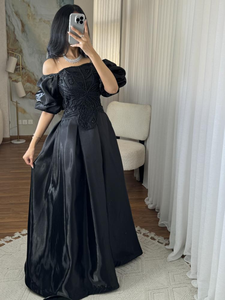 فستان بلون الاسود بخام الاورجنزا تطريز راقي من على الصدر بخمسه مقاسات من S الى XXL