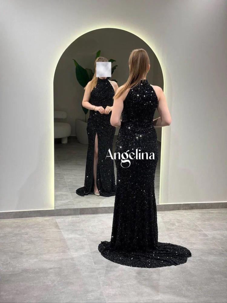 فستان طويل سهرة لون اسود خناقي كت ب اكتاف مشكوفه بقماش القطيفه المخمل الممزوجه بالترتر بالكامل