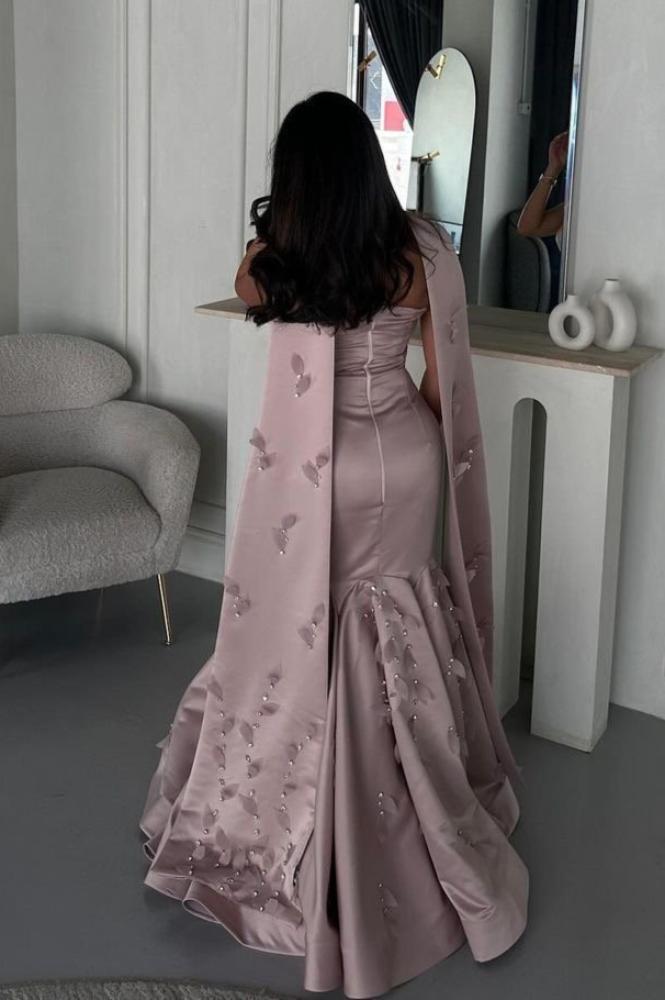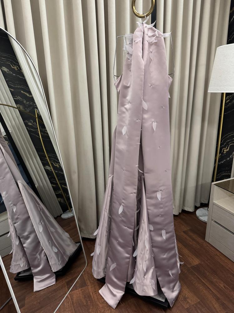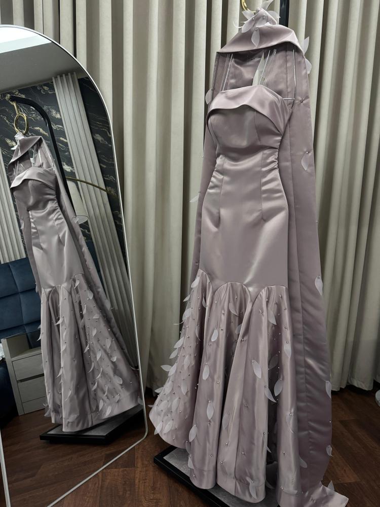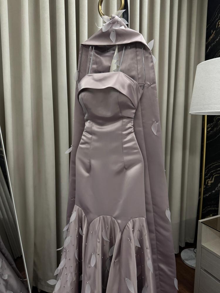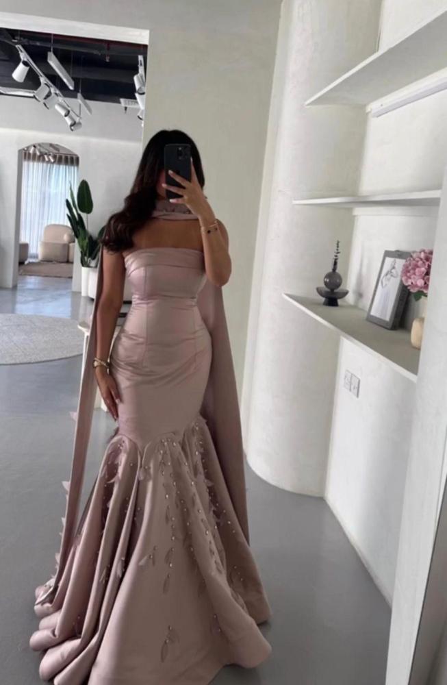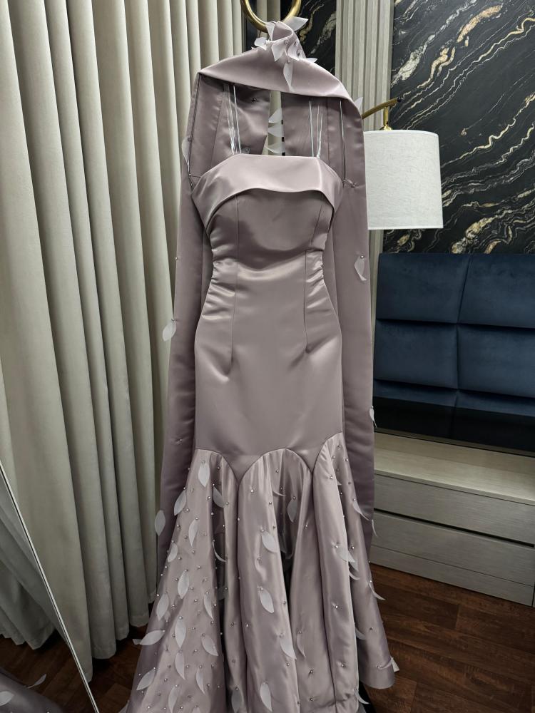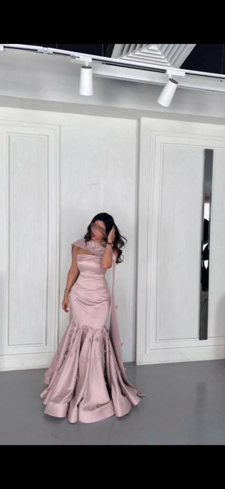 فستان سهرة بخام التفته مزين بورد متوفر بلون فقط متوفر بخمسة مقاسات من S الى XXL