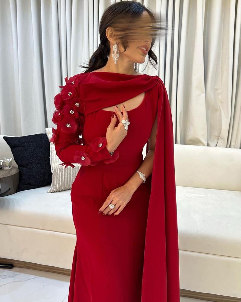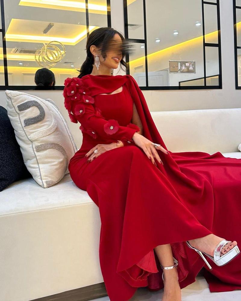 فستان بلون الاحمر بخام الكرا مورد من الكتف ليزر