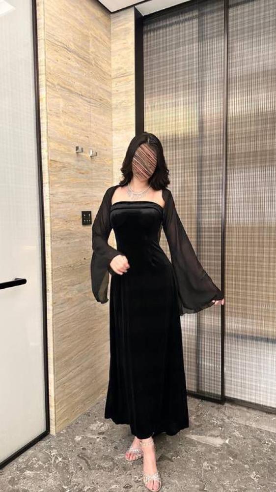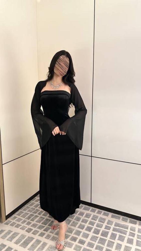 فستان اسود مخمل ناعم على جاكت قماش شيفون شفاف