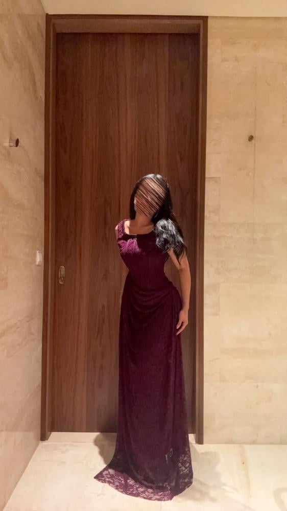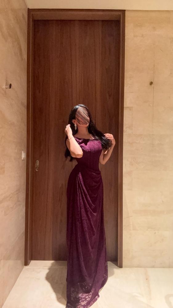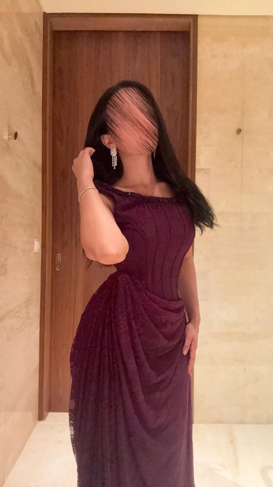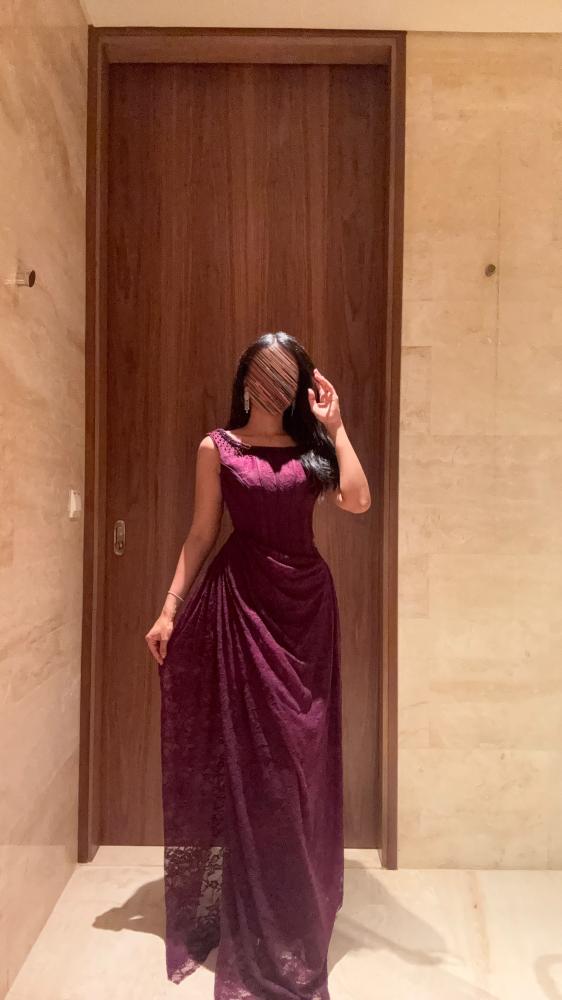 فستان طويل سهرة بقماش الدانتيل والتطريز الخرز اليدوي