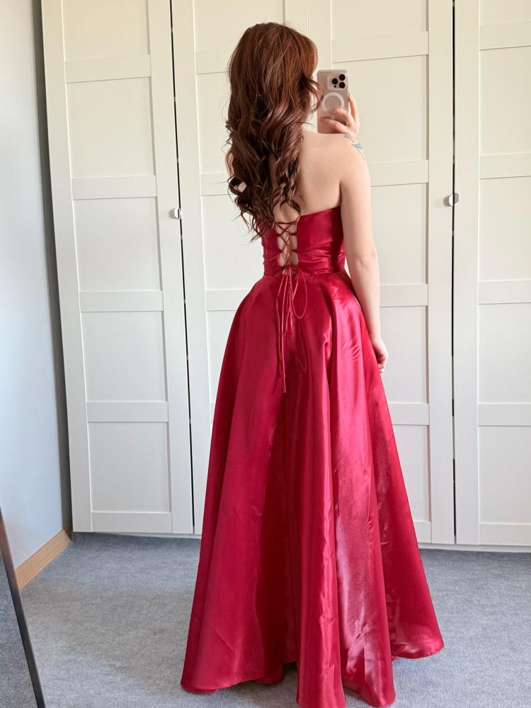 فستان تب طويل سهرة ناعم لون احمر بقماش الكرنكل اللمعه ( غير قابل للتمدد)