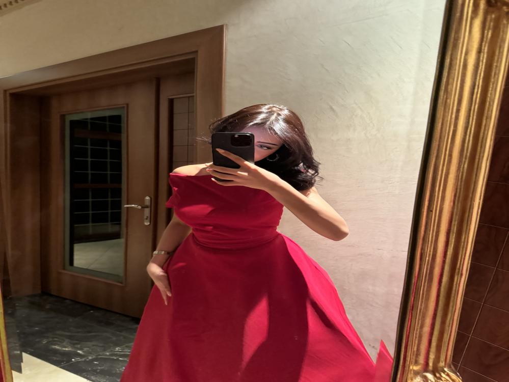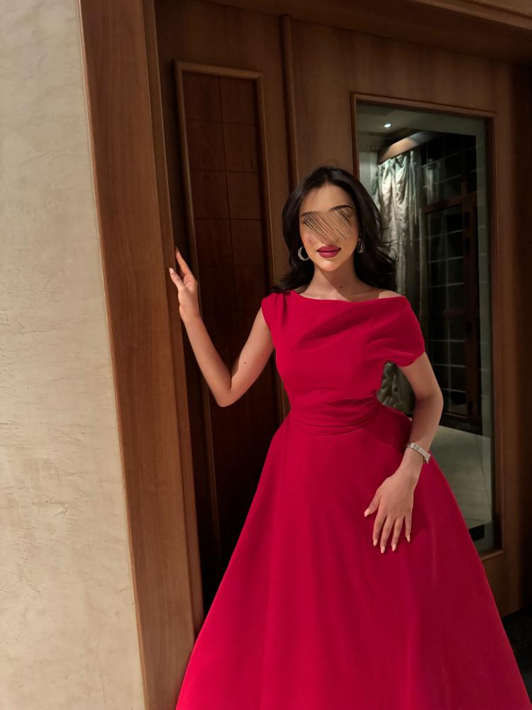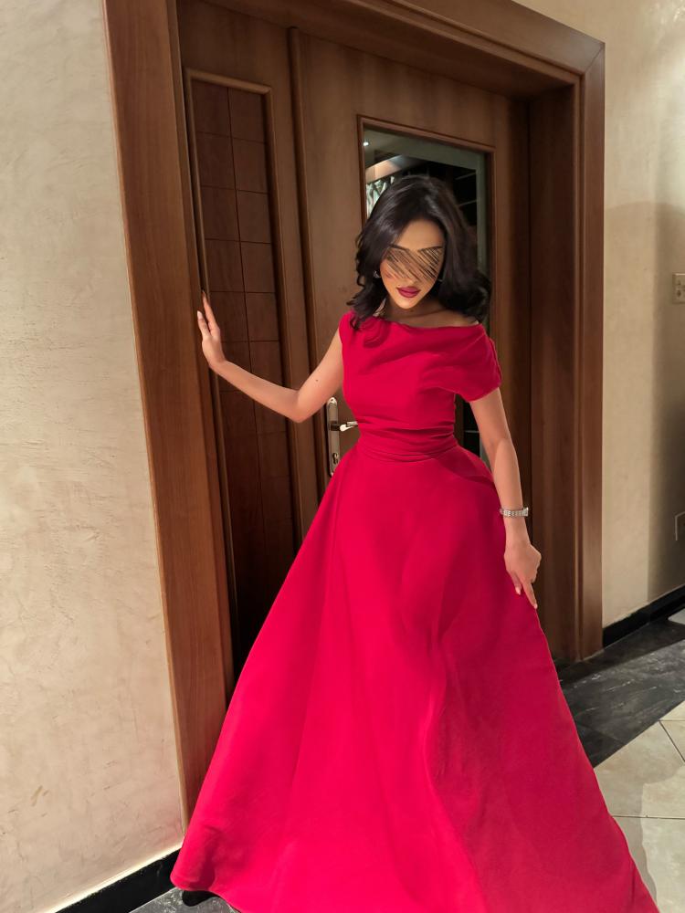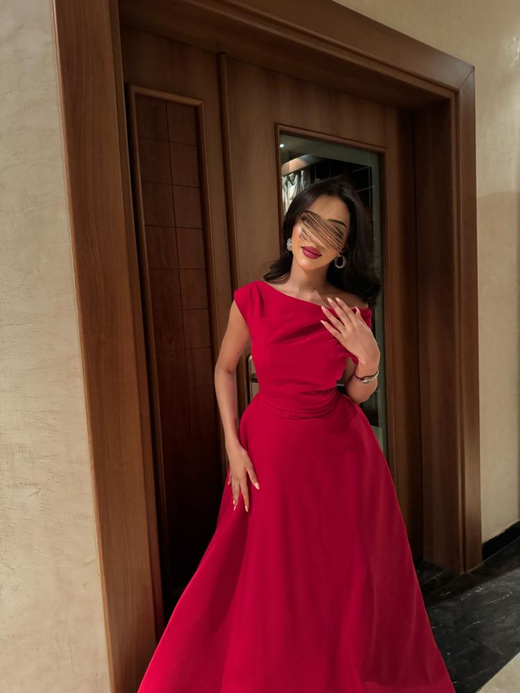 فستان طويل احمر ب قماش التفتة الباربي جيبون بالكامل