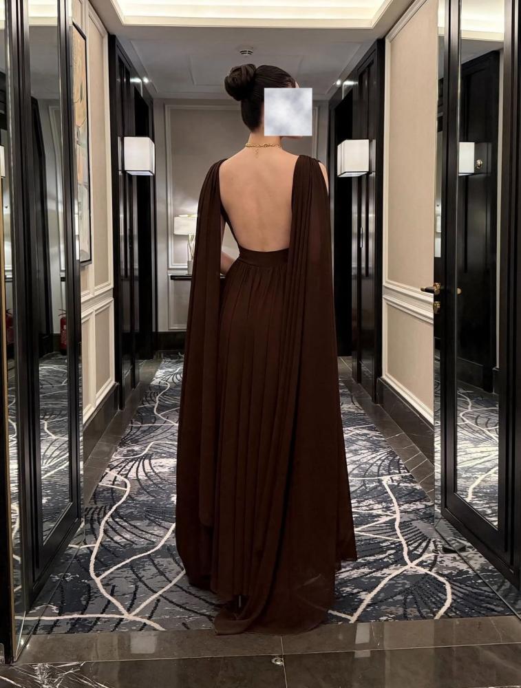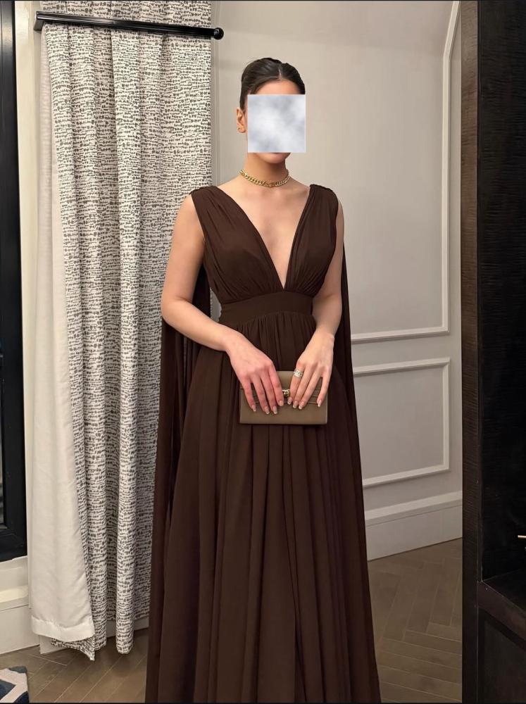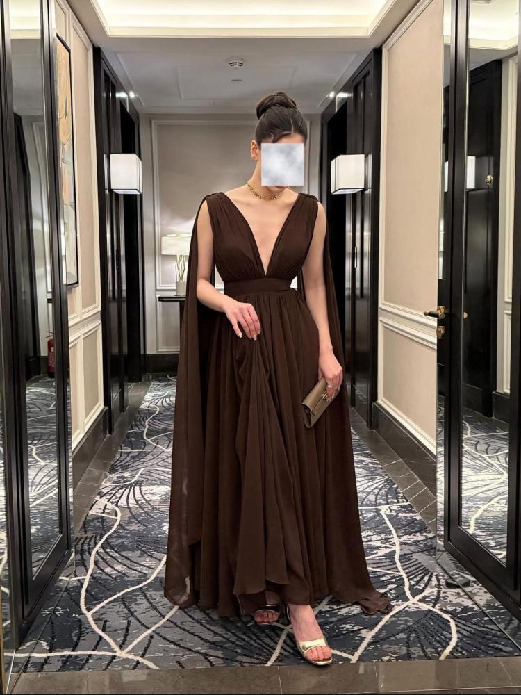 فستان طويل ناعم لون بني ( موكا) بقماش الشيفون مبطن ( فتحه بالظهر)