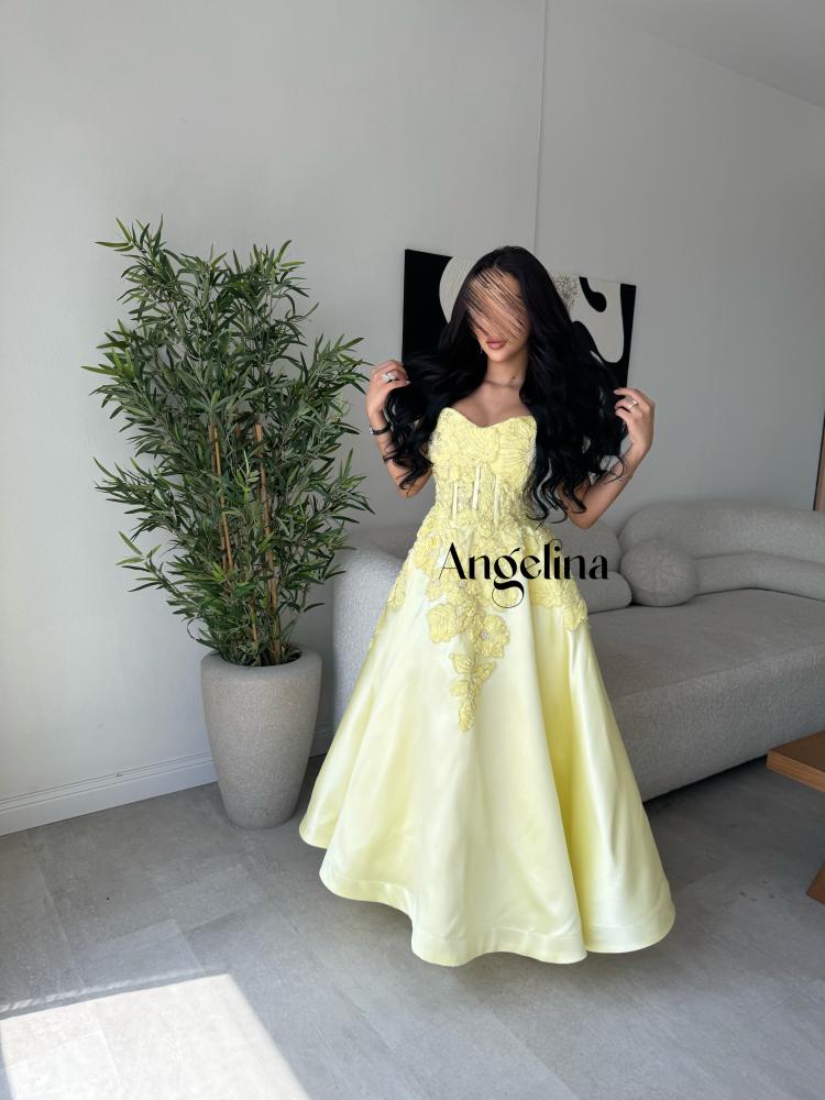 فستان تب ميدي سهرة لون اصفر بقماش التفتة الساتان وكلفه مطرزه