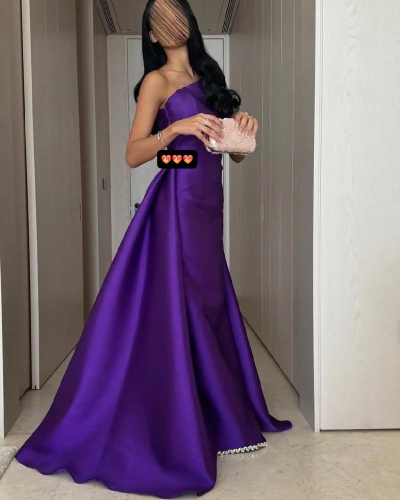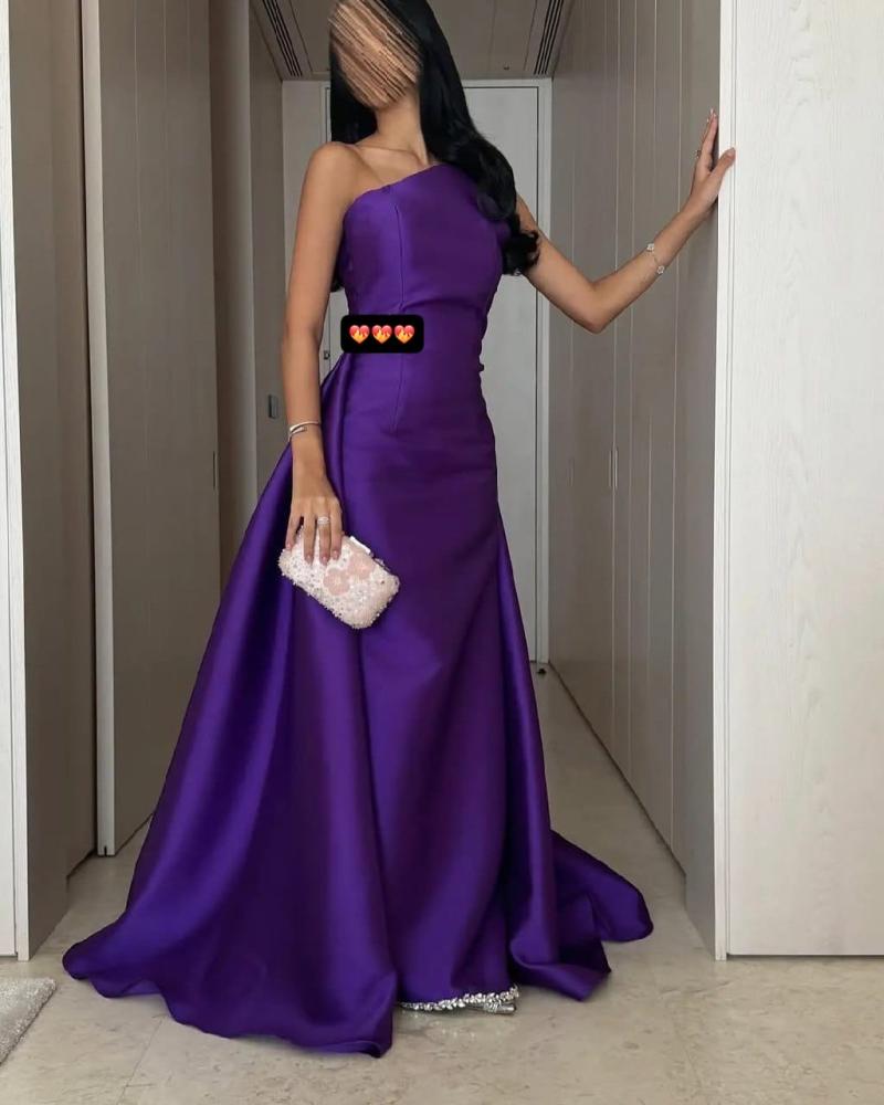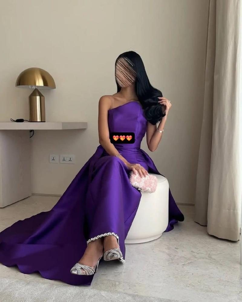 فستان طويل سهرة راقي لون موف مزين ب اكسسوار اسفل الفستان بقماش تفتة مي كادو