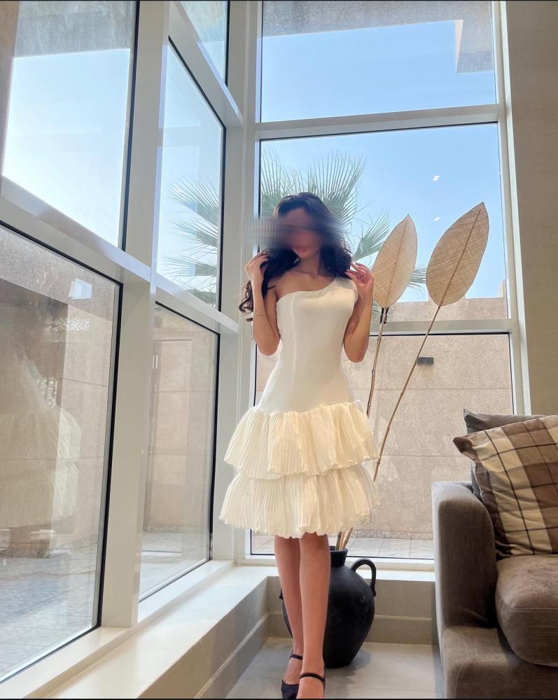 فستان ناعم قصير لون سكري طبقات تكسيره بوليسا بقماش التفتة الشان طون