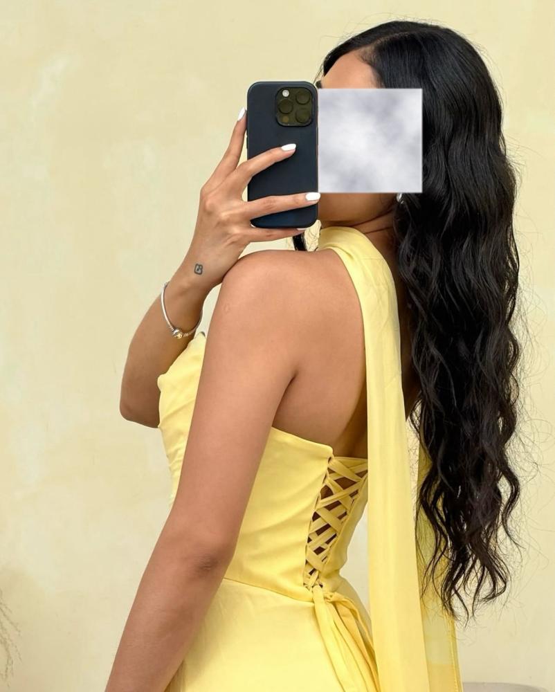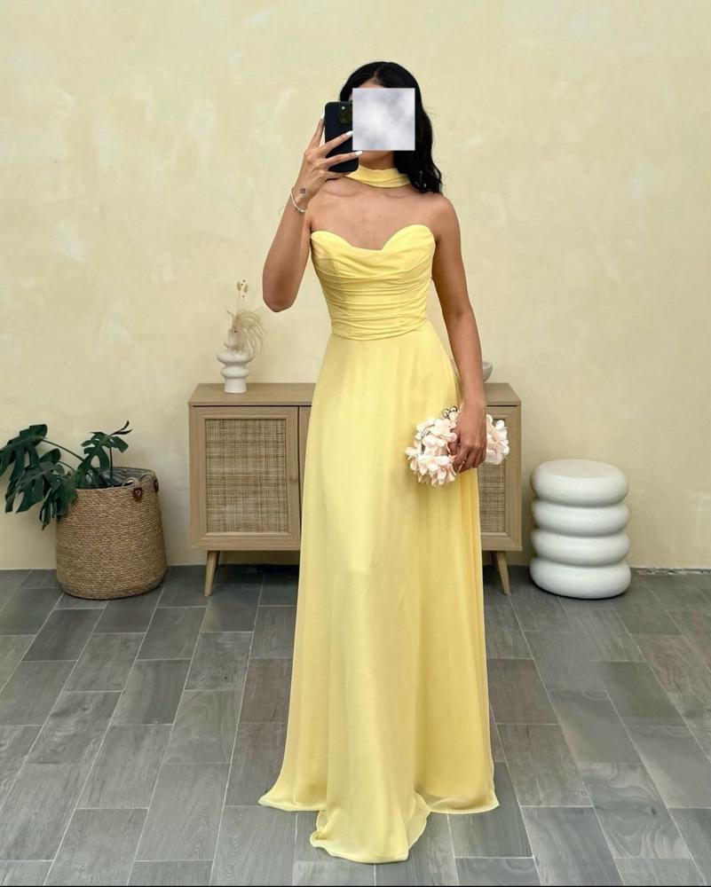 فستان تب طويل ناعم بشال منفصل بقماش الشيفون الناعم مبطن لون اصفر