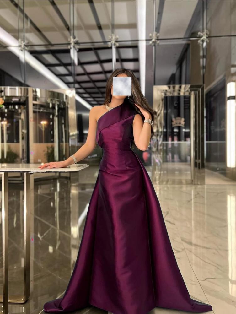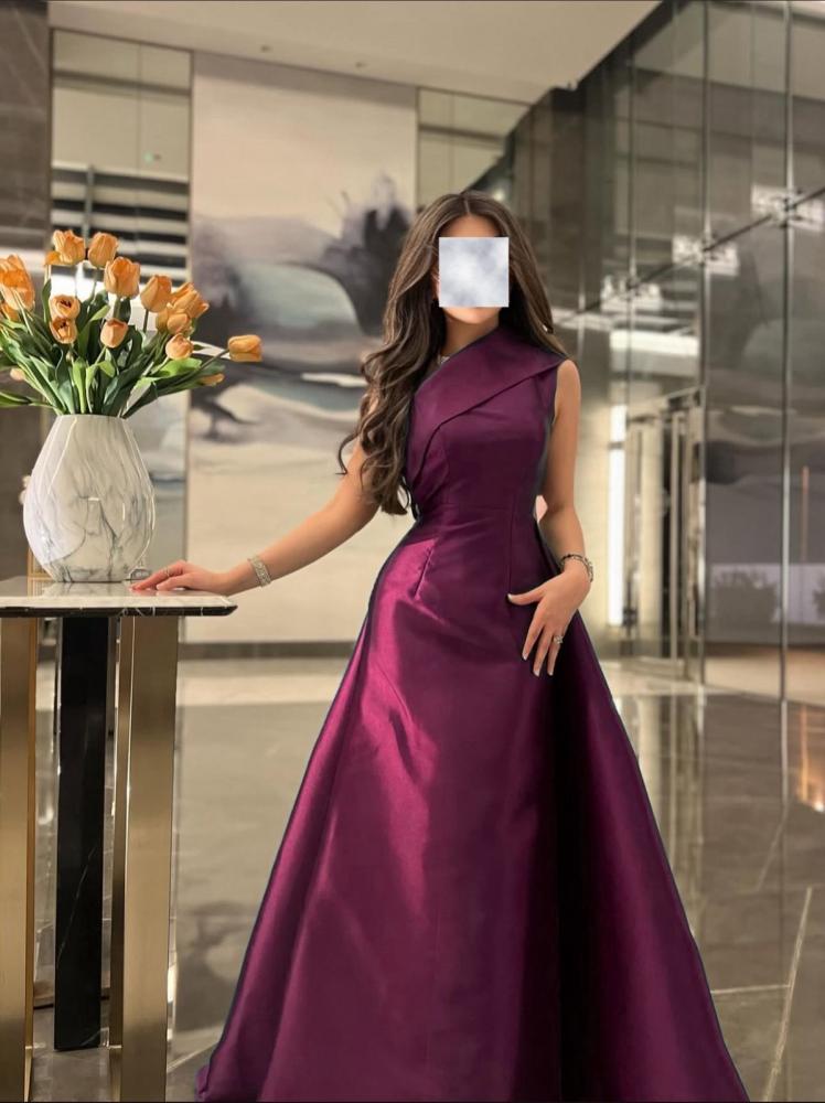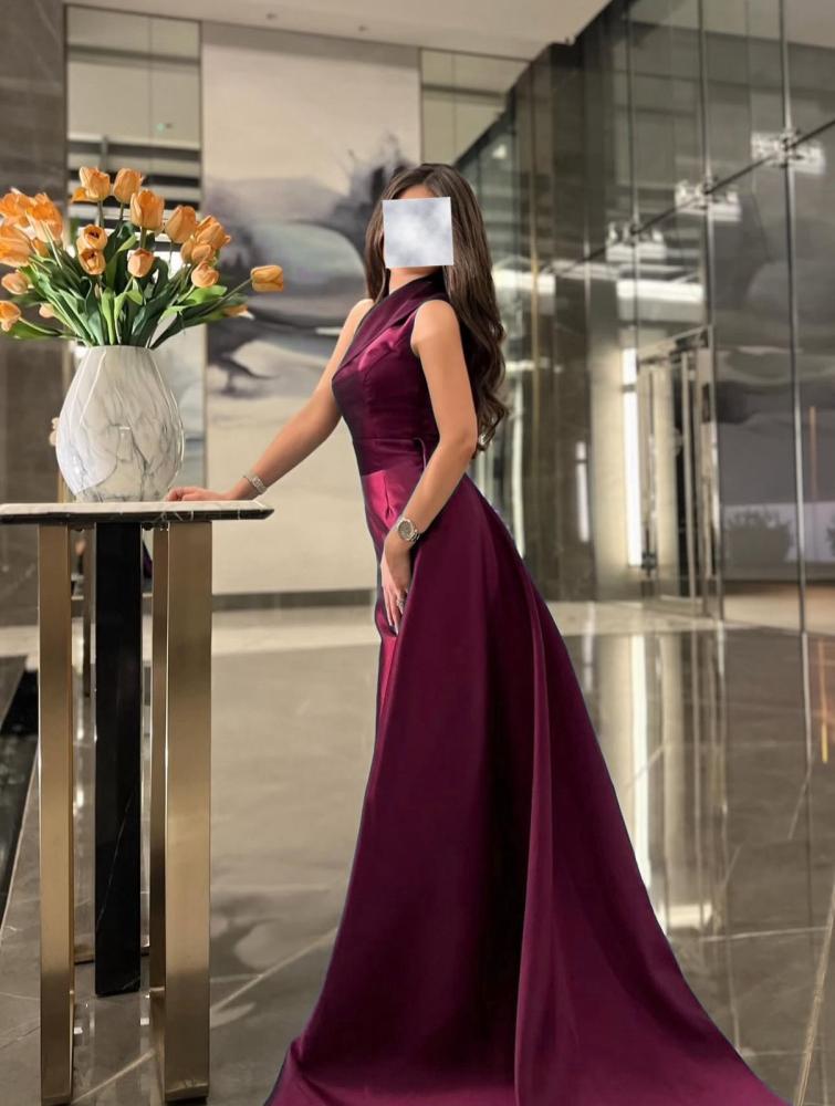 فستان طويل سهرة لون بورغندي بقماش التفتة المي كادو ( غير قابل لتمدد)