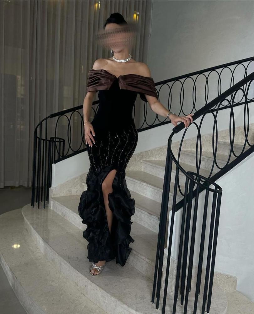 فستان بخام الكريب الاسترتش + تفته + جازار سادة + تطيرز يدوي بخمسة مقاسات من S الى XXL